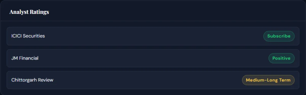 Valuation: At a P/E of ~18.5× (FY25 basis), the IPO appears attractively priced relative to comparable PSU consultancy peers (EIL at ~22×, RITES at ~23×) and the RHP-cited industry average of 22.6×. The superior return profile (RoNW significantly above peers) suggests a potential undervaluation relative to intrinsic quality.