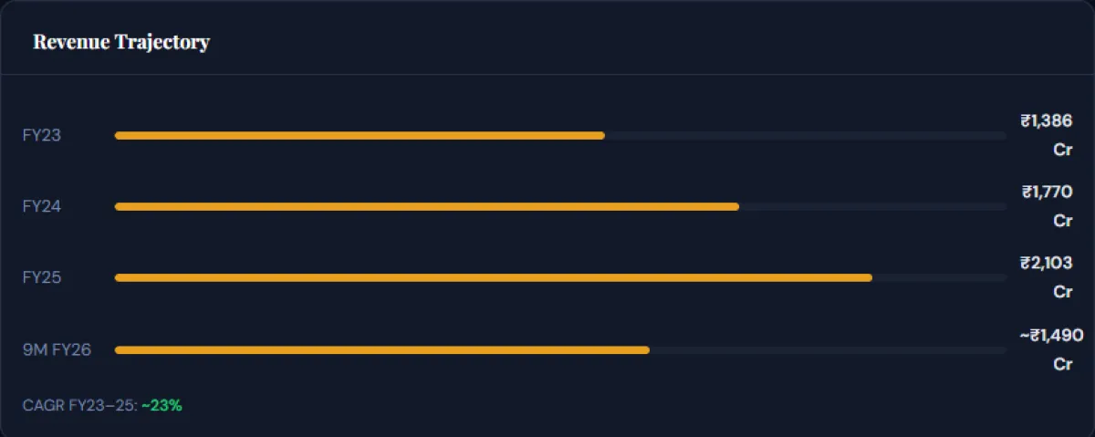 Valuation: At a P/E of ~18.5× (FY25 basis), the IPO appears attractively priced relative to comparable PSU consultancy peers (EIL at ~22×, RITES at ~23×) and the RHP-cited industry average of 22.6×. The superior return profile (RoNW significantly above peers) suggests a potential undervaluation relative to intrinsic quality.