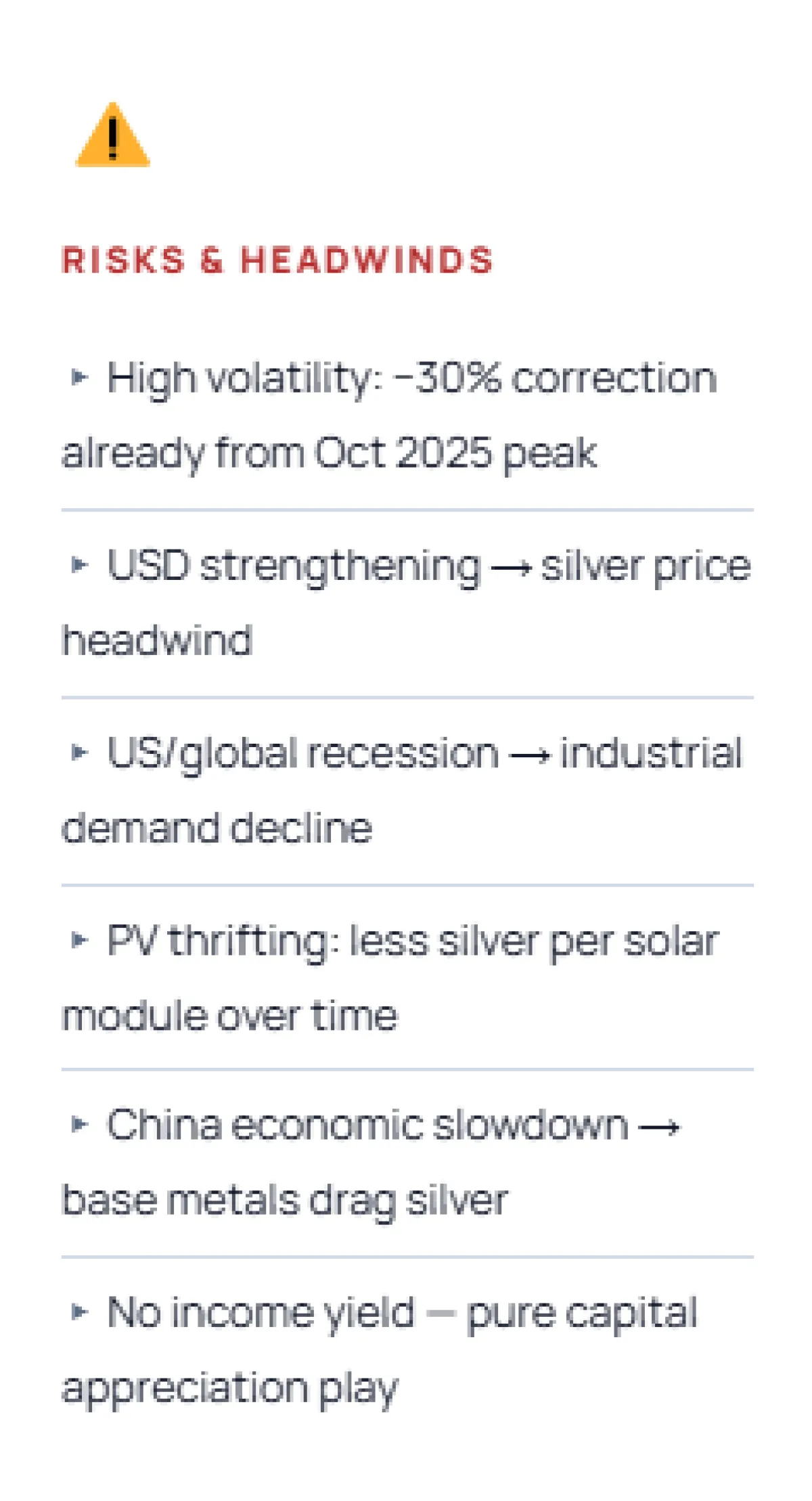 −30% correction; high silver volatility vs gold
